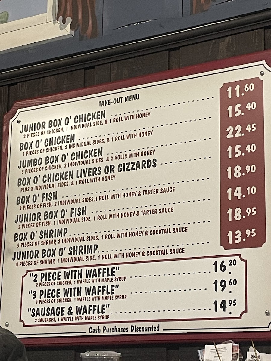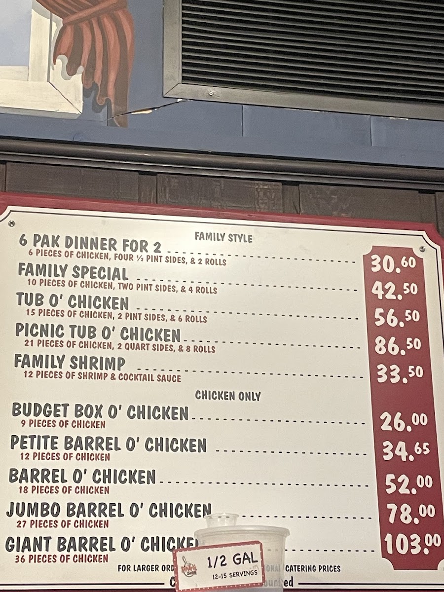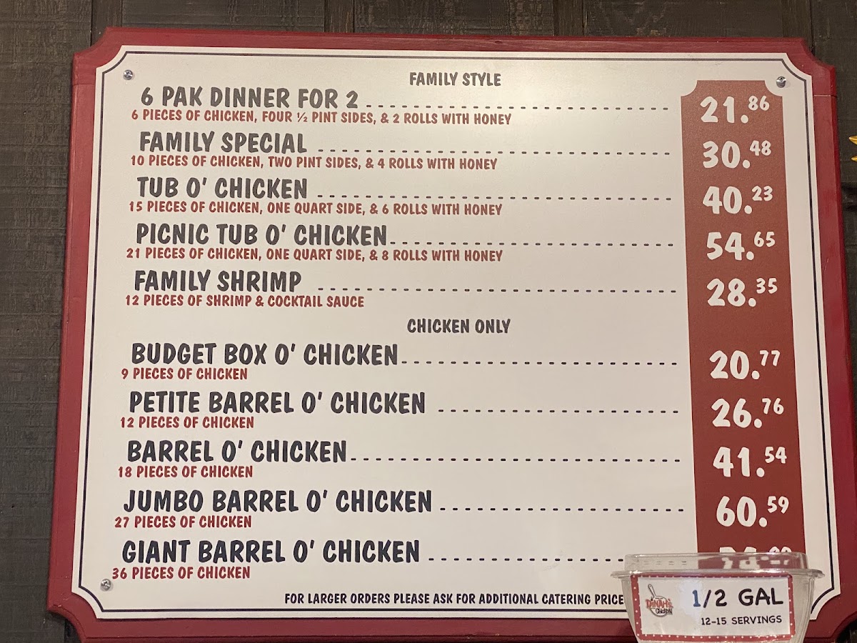 21 pieces of chicken, 2 quart side and 8 rolls with honey.