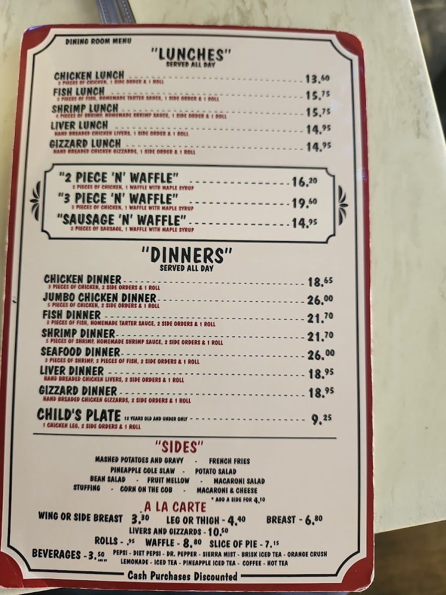 Hand-breaded chicken livers with 2 side orders and a dinner roll with honey.